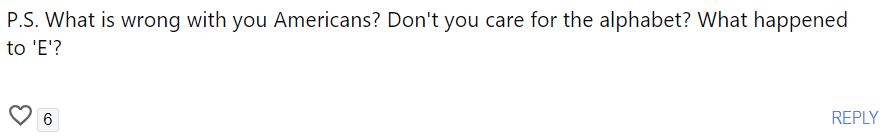 P.S. What is wrong with your Americans? Don’t you care for the alphabet? What happened to ‘E’?