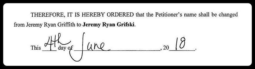 As you may have noticed throughout this entire piece, I’ve mentioned achievements, milestones, and accomplishments that have been tied to this peculiar fellow: Jeremy Griffith, the previous me. As of June 2018, however, my name was legally changed to Jeremy Grifski.